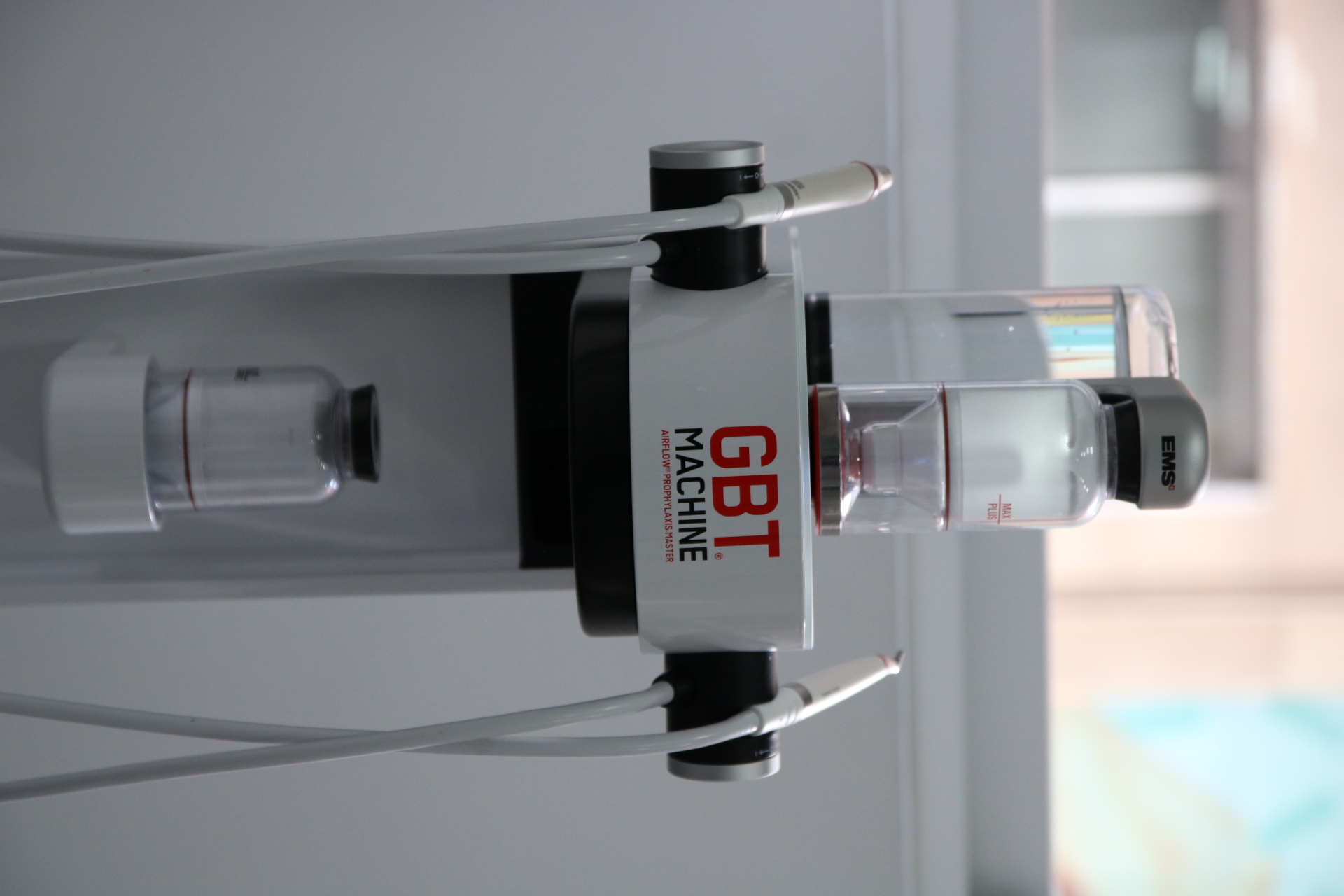 La Guided Biofilm Therapy (GBT) es el protocolo más avanzado de higiene y profilaxis dental. Utilizamos el equipo Airflow Prophylaxis Master de EMS, que combina aire, agua tibia y polvo de eritritol para eliminar el biofilm de forma mínimamente invasiva, sin dañar el esmalte, las encías ni las restauraciones. Un tratamiento más eficaz, más cómodo y más seguro que la limpieza tradicional.